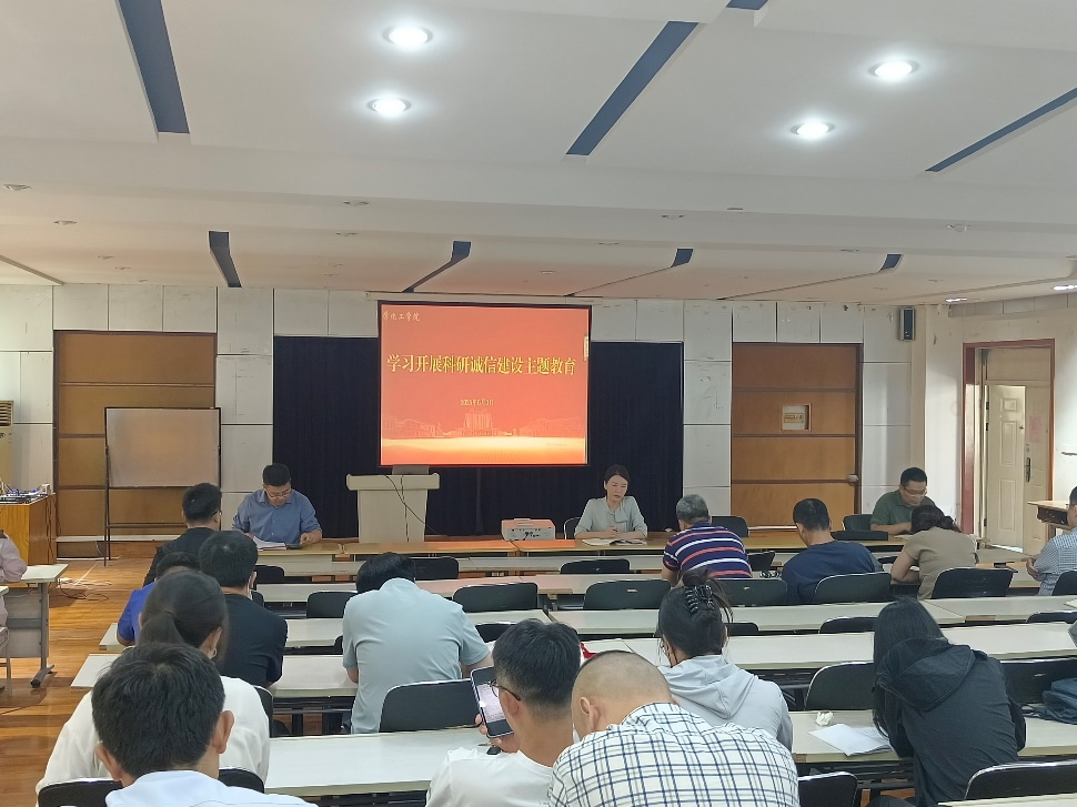 6月3日,化学化工学院在求实楼0215会议室开展了科研诚信建设主题教育活动。全院教师人员参与此次活动。本次活动以“坚守学术初心,弘扬求真精神”为主题,旨在通过系统化学习引导,强化科研人员的道德自律与责任意识。