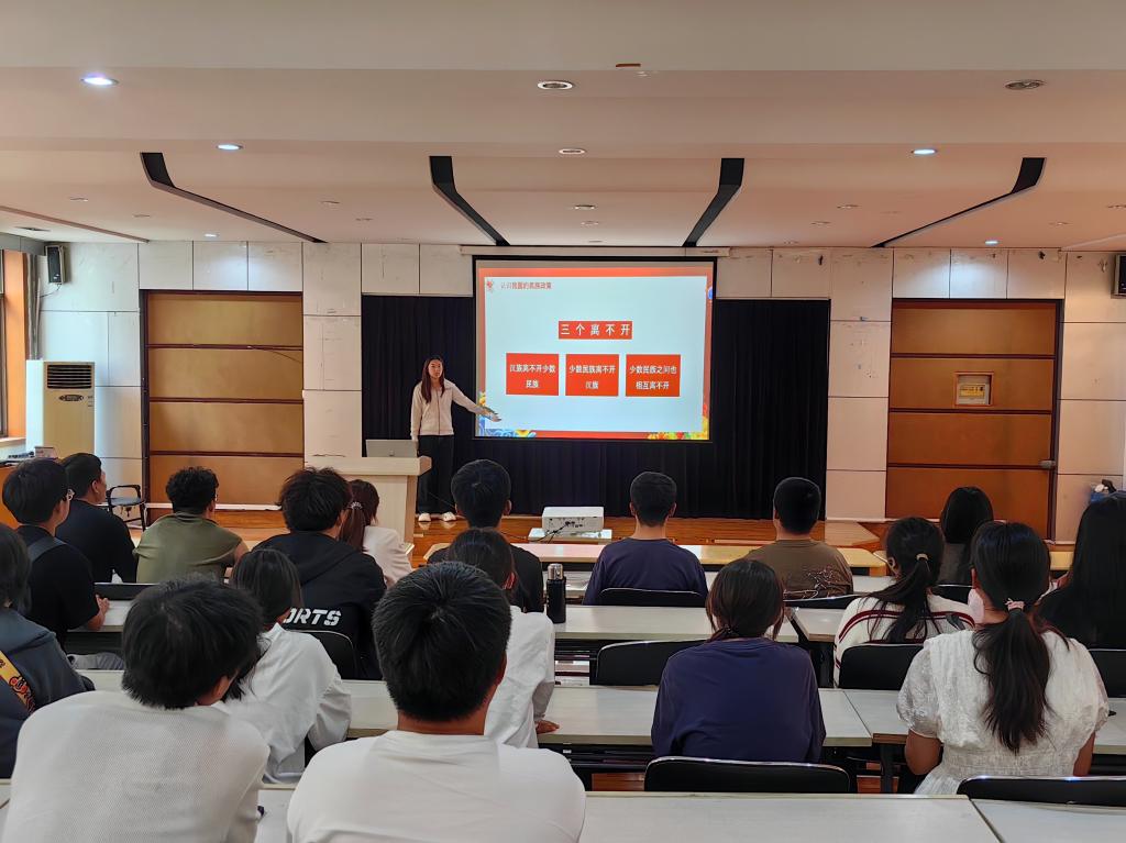 会上,主讲人解读了我国的民族政策和民族相关知识,并通过领学民族团结模范王燕娜的故事,强调了民族团结的重要性和铸牢中华民族共同体意识的重要意义。随后,主讲人就如何维护民族团结提出建议,鼓励各党员学生要树立正确的民族观,自觉维护民族团结,为实现民族团结一家亲,同心共筑中国梦贡献青春力量。
