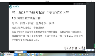 近日,2023年考研国家线已经公布,在考研上线同学准备复试或调剂的关键时期,为使考生获取精准有效的复试面试指导,化学化工学院于3月14日采取线上腾讯会议方式召开了考研复试指导会议(第二场)。会议由学院分管教学副院长王新芳教授主持,邀请了4位往届考取研究生的毕业生分享复试及调剂经验,院长李洪亮教授做了考研复试指导报告,化学化工学院2023届考研上线考生参加了会议。