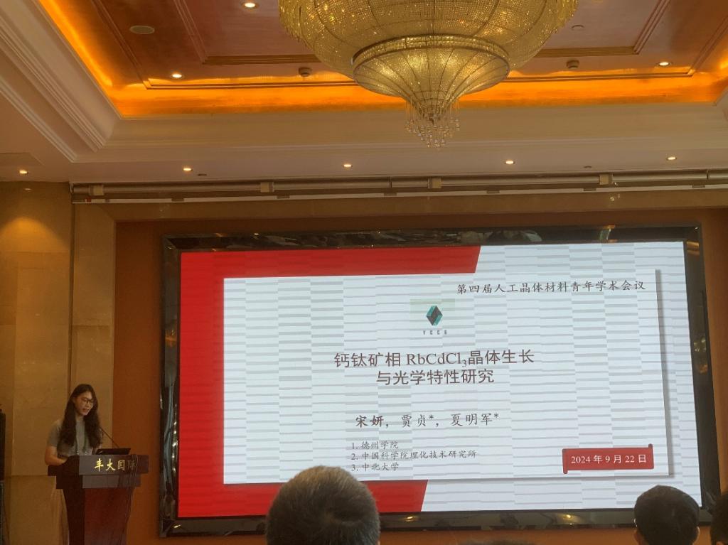 德州学院为这两项成果第一完成单位,第一作者均为我校与中北大学联合培养研究生宋妍同学,该生以《钙钛矿相RbCdCl3晶体生长与光学特性研究》为题,在今年9月份第四届人工晶体材料青年学术会议报告了本研究的进展,受到了同行的广泛关注。化学化工学院贾贞教授、中国科学院理化技术研究所夏明军研究员和北京大学陈明星教授为论文共同通讯作者。中国科学院理化技术研究所公丕富副研究员、中北大学袁长春教授、北京科技大学赵静教授和我校王志刚教授、研究生李新慧和张艳娇为共同作者。本研究得到山东省自然科学基金、山东省硅单晶半导体材料与技术重点实验室、德州学院学科建设平台等经费资助,以及中科院理化技术研究所康雷研究员的指导等支持。