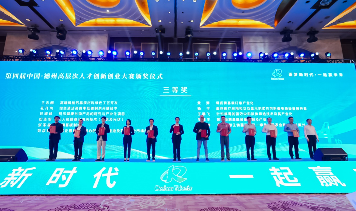 9月27日至28日,以“逐梦新时代·一起赢未来”为主题的第四届中国·德州高层次人才创新创业大赛总决赛、颁奖仪式暨京德科技人才合作交流大会在德州市隆重举行。经过初赛、决赛和排位赛激烈角逐,化学化工学院王志刚教授团队参赛项目“高端硫酸钙晶须材料绿色工艺开发”获的创新组三等奖,王烟霞副教授团队参赛项目“糠醛渣木质素的绿色提取工艺开发”获的创新组优胜奖,取得学院在该类赛事新突破。