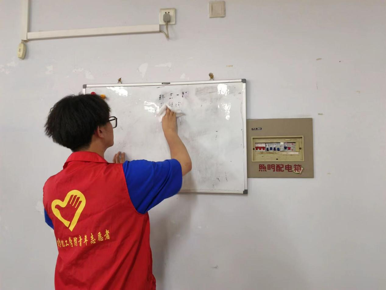 为进一步弘扬志愿服务精神,营造洁净、舒适、文明的学习环境,6月5日-6月9日,化学化工学院于求实楼开展“白板我来擦,爱护靠大家”教室白板清理志愿活动。