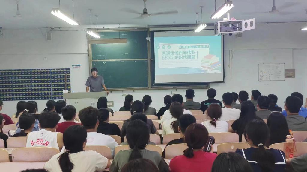 为大力推广和规范使用国家通用语言文字,提高全院学生的语言文字规范意识和用语用字规范化水平,9月11日,化学化工学院召开“普通话诵百年伟业,规范字写时代新篇”普通话推广讲座。2023级全体新生参加。