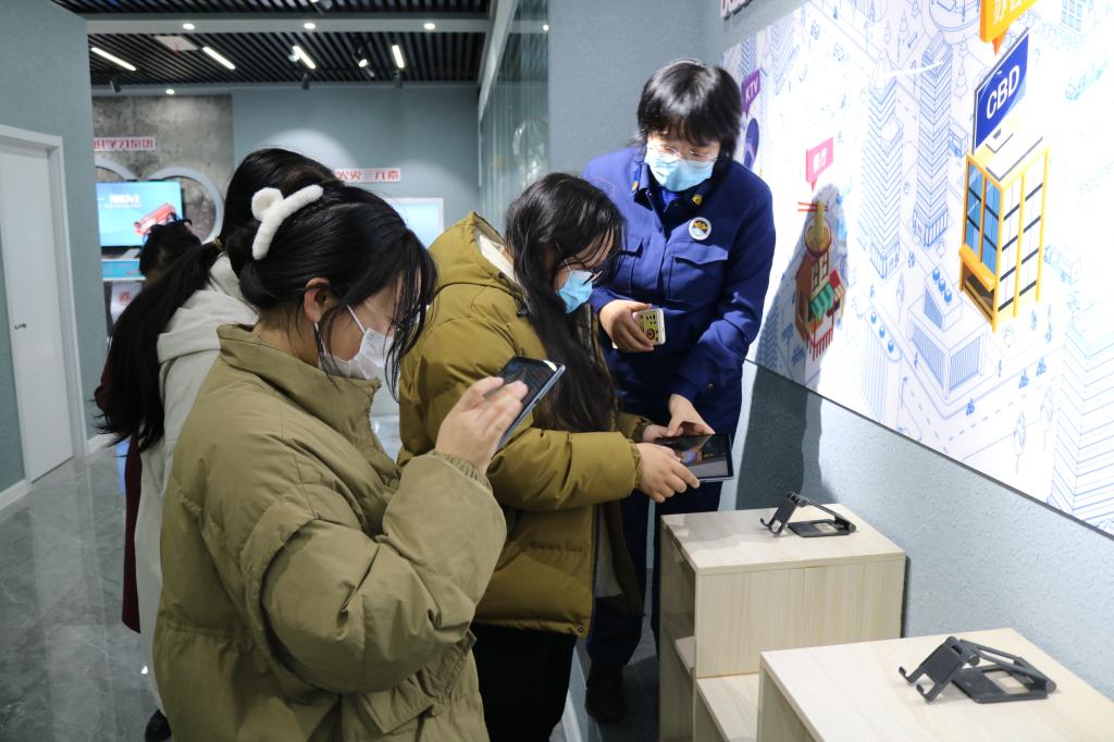 活动现场,讲解员通过实物展示、视频介绍、多媒体互动体验等科技手段,真实还原了客厅、厨房和电动车等火灾隐患场景,多角度讲解防火、灭火基本常识和消防器材使用方法等内容。在讲解员的指导下,学生依次体验了 119报警、安全绳逃生、模拟厨房灭火、地震逃生、电梯速降逃生,现场检验消防安全知识掌握程度。