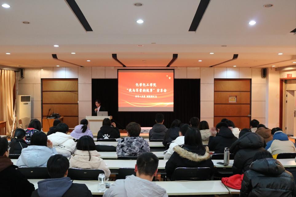 为加强国防教育宣传力度,营造热爱国防的浓厚氛围,化学化工学院于12月18日晚在求实楼215教室举办“我与军营的故事”分享会活动。本次活动由四位退役大学生士兵代表主讲,70余名同学到场聆听。会上,四位宣讲员以习近平强军思想为指引,结合国防教育宣传要求,讲述军营青春故事,展示新时代退役大学生风采,激励学子争做全民国防教育的践行者,从自身开始,自觉成为全民国防教育的推动者,实践者。