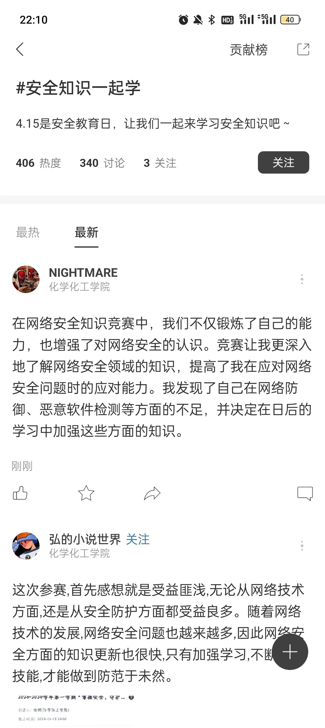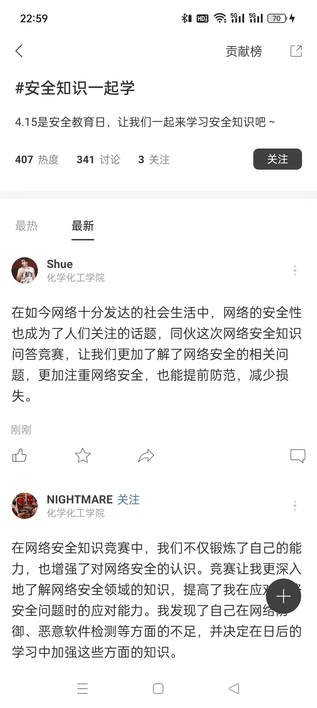 化学化工学院围绕“教育教学”、“文化娱乐”和“生活服务”三个主题开展了“‘铱’点‘铱’滴,有记可循”优秀学习笔记展示活动、“‘钼’浴书香,伴我成长”读书笔记打卡活动、“我的校园,我的青春”七天校园摄影打卡活动和“掌握安全,守护未来”网络安全知识竞赛。