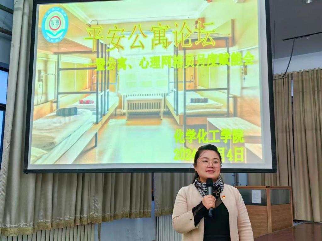 为了加强校园安全管理,提升学生的安全意识和文明素养,推进“一站式”社区管理与服务,化学化工学院于 2024 年3月4日在求实楼 4009 报告厅举办了“平安公寓论坛”暨公寓、心理网格员赋能会。化学化工学院辅导员、全体公寓网格员、心理网格员参加了本次会议。
