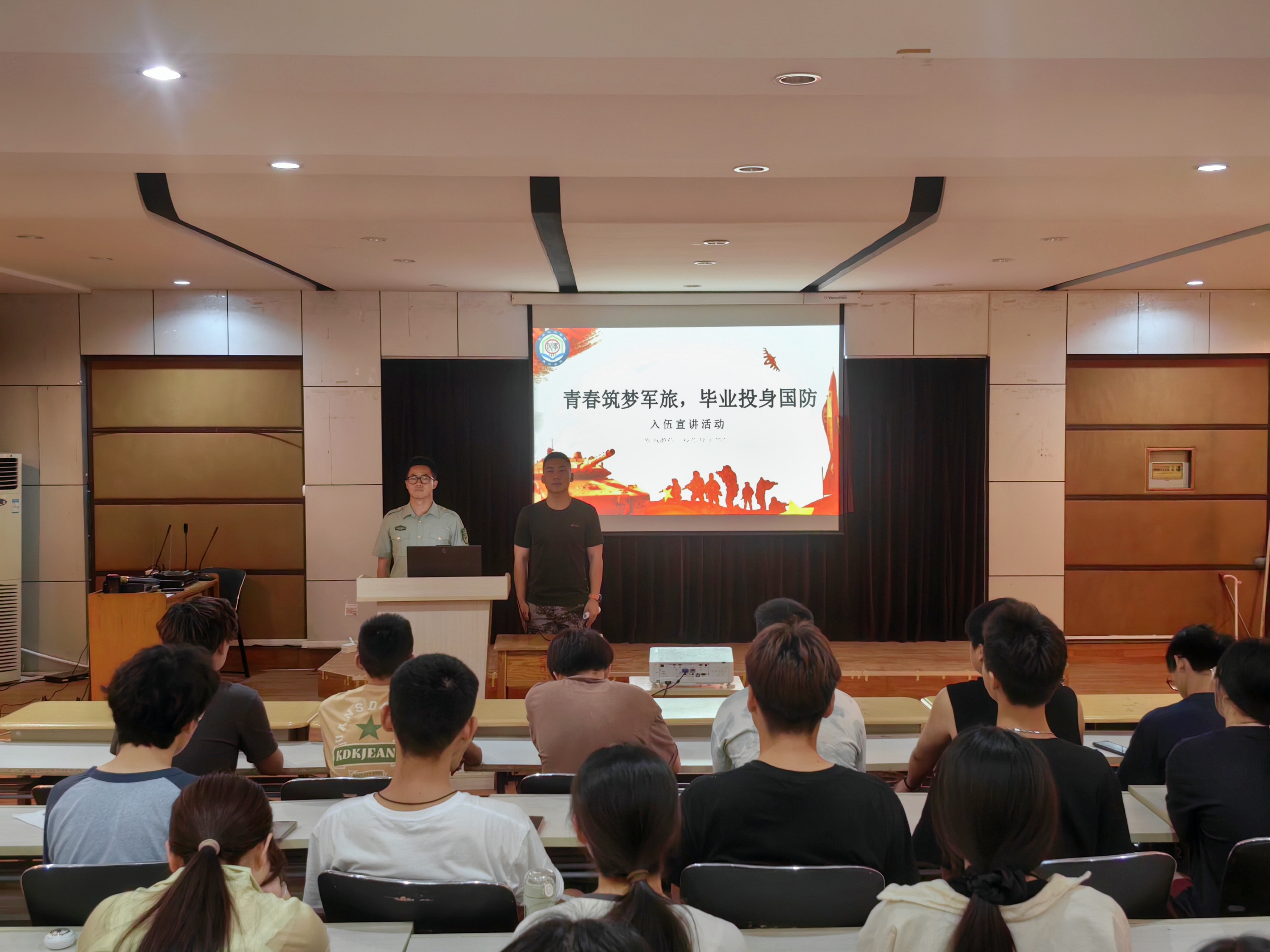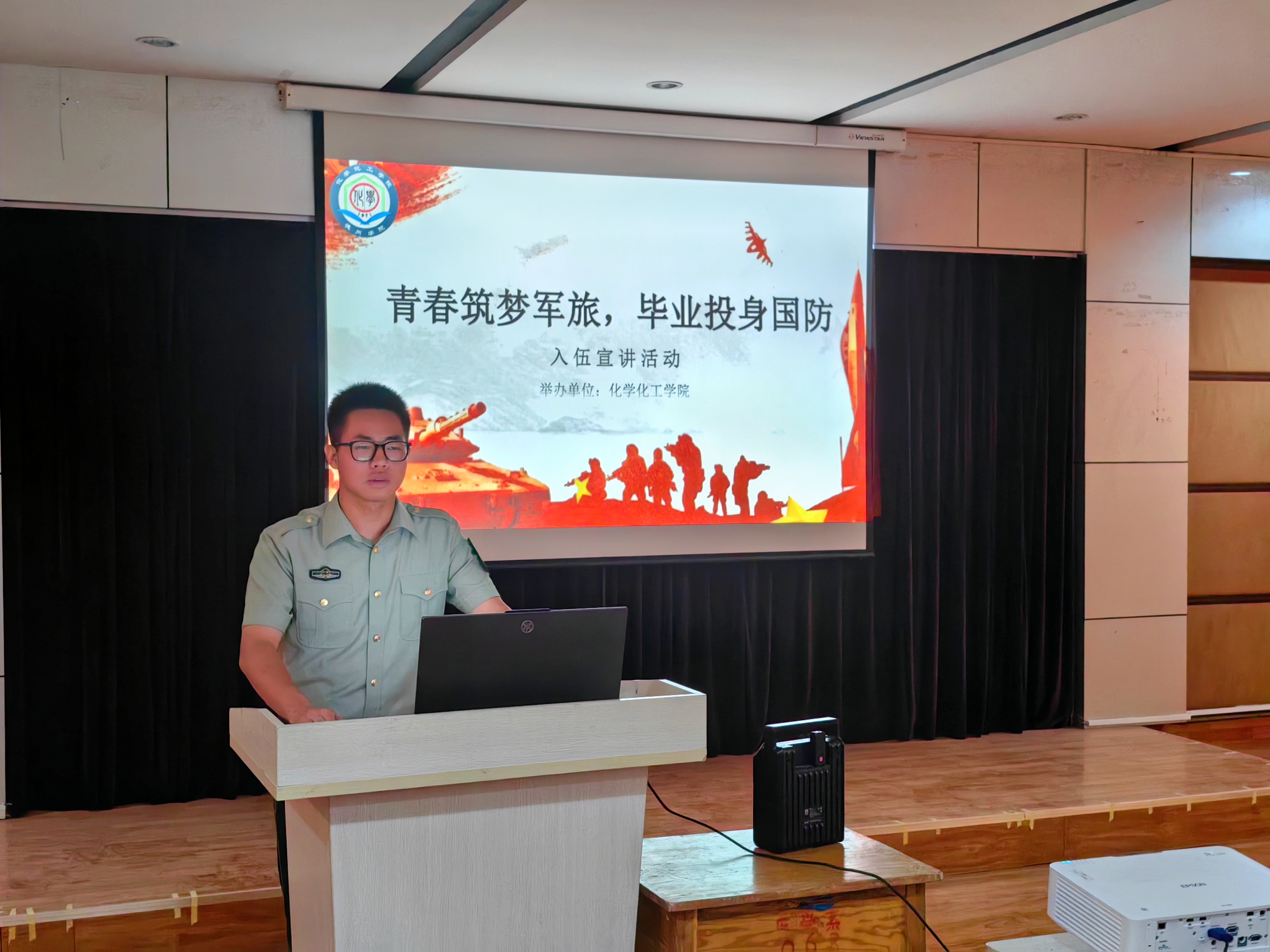 为引导毕业生厚植强军爱国情怀,提高毕业生参军入伍的热情,增强国防意识和强军观念。6月12日,化学化工学院在求实楼215举办“青春筑梦军旅,毕业投身国防”应征入伍宣讲活动,毕业生代表和辅导员老师参加,会议由学院两位退役大学生主讲。