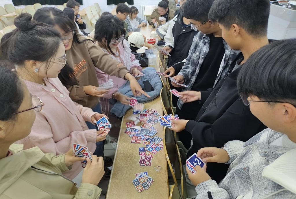 为丰富学生课余生活,激发学生对化学学科的学习热情与探索精神,化学化工学院于10月19日在求实楼开展“元素奇妙旅,化学乐启航”趣味UNO桌游活动。