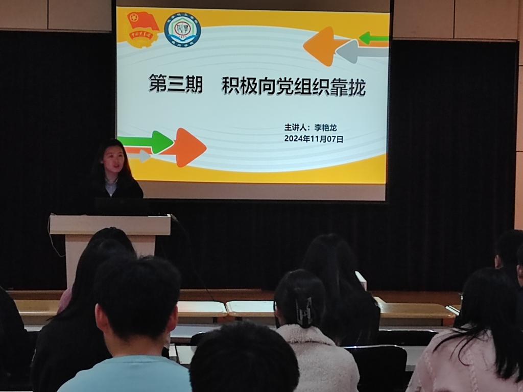 会上,主讲人围绕“积极向党组织靠拢”主题,领学了党的发展历程、中国共产党百年奋斗伟大成就等内容,详细介绍入党的基本流程和发展党员的工作细则,鼓励同学们坚定理想信念、扎实专业知识,以实际行动积极向党组织靠拢,争做新时期马克思主义的信仰者、实践者、传播者!