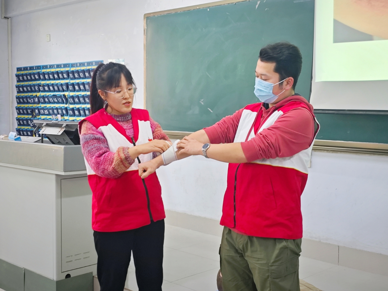 为普及公共安全知识,提高大学生自我保护意识和应急救护能力,弘扬“奉献、友爱、互助、进步”的志愿精神,12月3日,化学化工学院联合德州市红十字会开展应急救护技能培训活动。