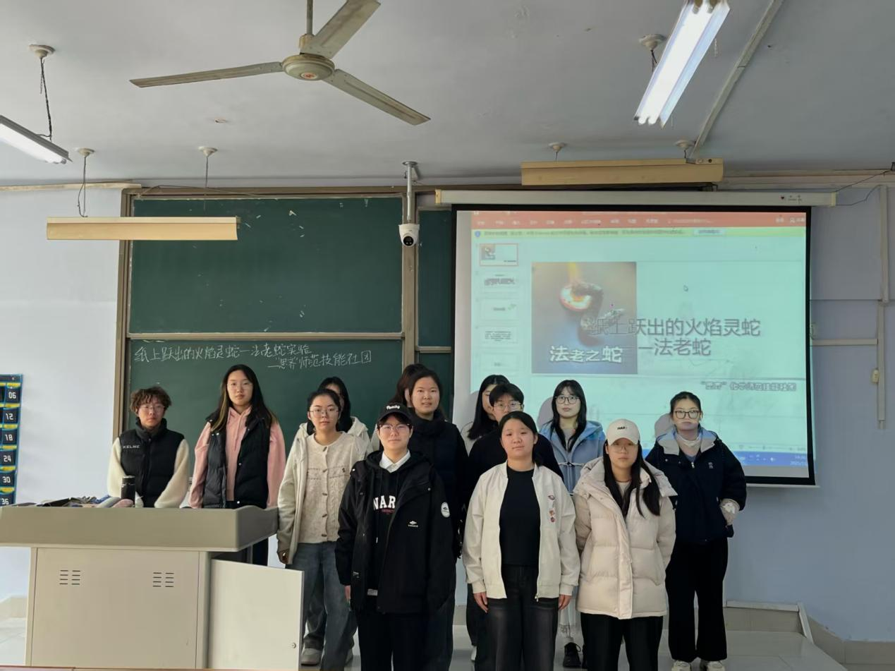 为了让同学们感受到化学学科的魅力,激发同学们学习化学的兴趣,化学化工学院“思齐”化学师范技能社团于11月2日在求实楼410教室举办了“纸上跃出的火焰灵蛇—法老蛇实验”活动。本次活动以实验的方式传播化学知识,展现化学魅力,增添校园文化生活的趣味性。