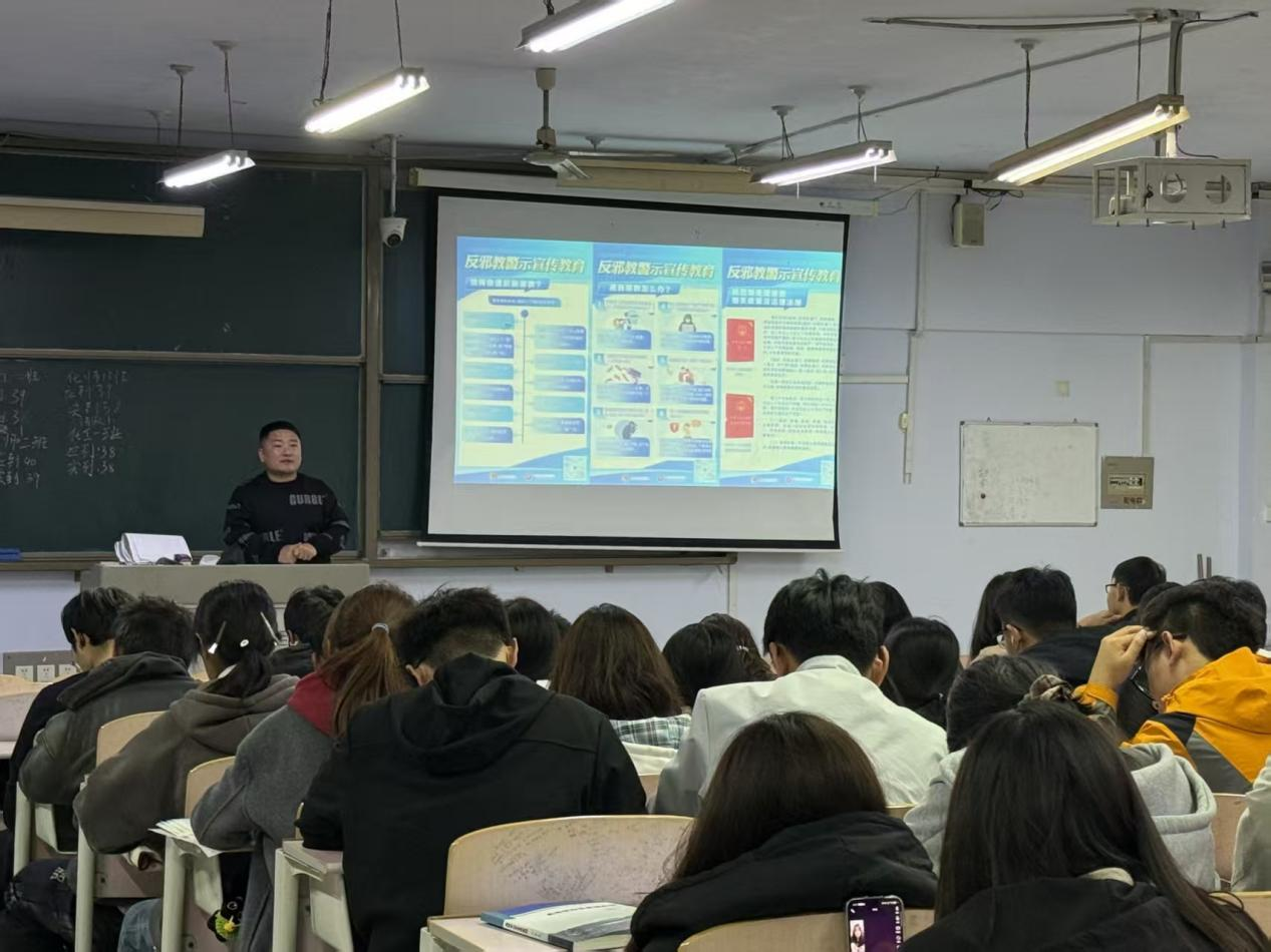 为切实增强学生识别与抵制邪教的意识和能力,筑牢校园反渗透、反侵蚀的思想屏障,11月11日,化学化工学院在求实楼410教室开展反邪教知识普及活动,2025级全体学生参加。