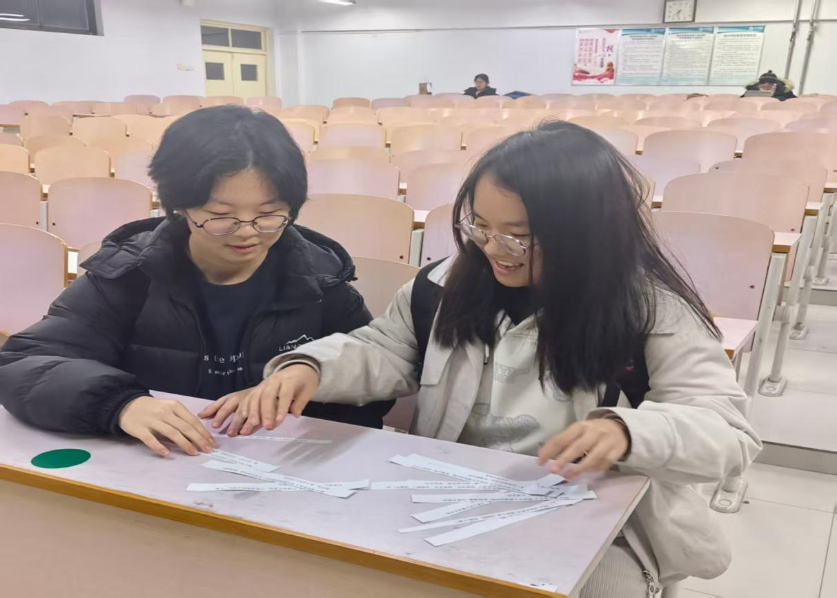 此次活动以趣味游戏为载体,旨在让同学们在游戏过程中了解化学试剂的性质及用途。游戏开始前负责人首先详细介绍了活动主题、目的及游戏规则。随后,各小组迅速进入状态,成员们各司其职、分工协作:有的快速分拣纸条,按试剂名称初步归类;有的凭借专业知识,核对性质与储存要求;有的则专注排查安全注意事项,避免因遗漏关键信息导致匹配失误。现场氛围热烈而有序,同学们积极配合完成游戏。