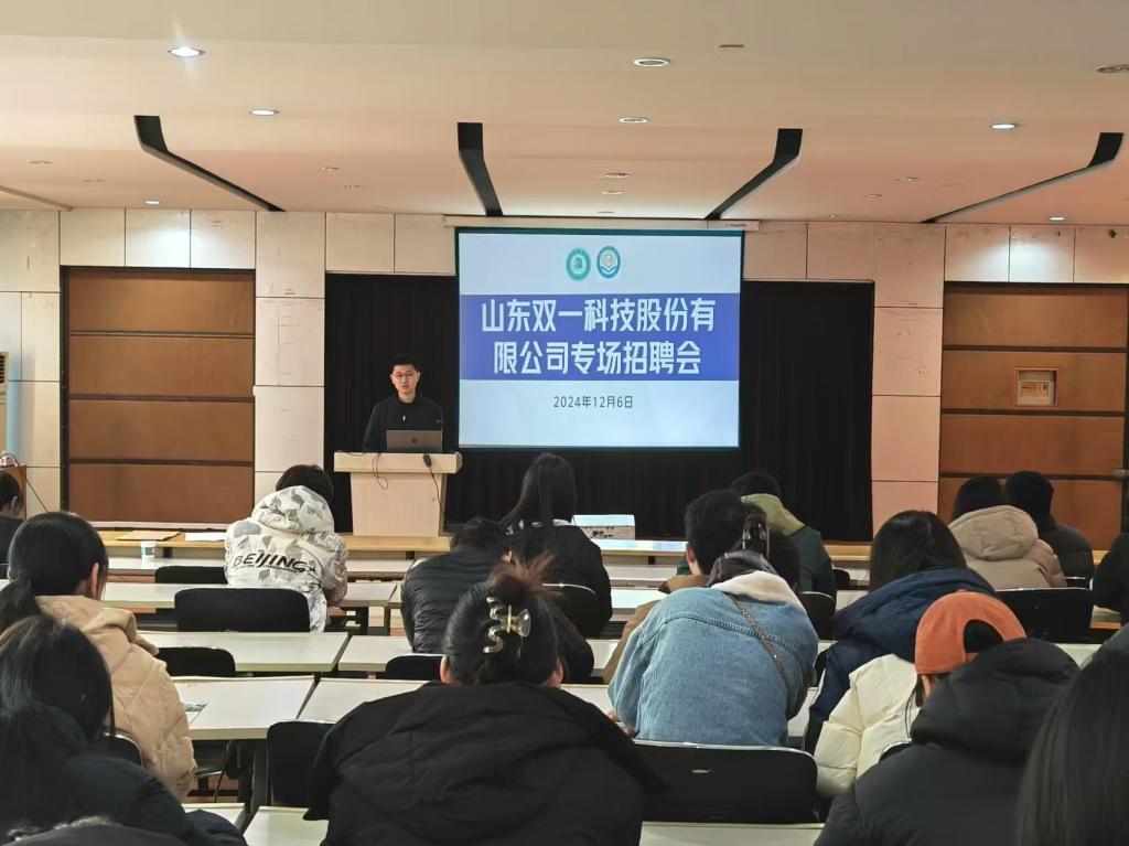 为搭建优质就业平台,促进校企精准对接,进一步推动毕业生高质量就业,12月6日,化学化工学院于求实楼215教室开展山东双一科技股份有限公司招聘宣讲会,2025届毕业生参加。
