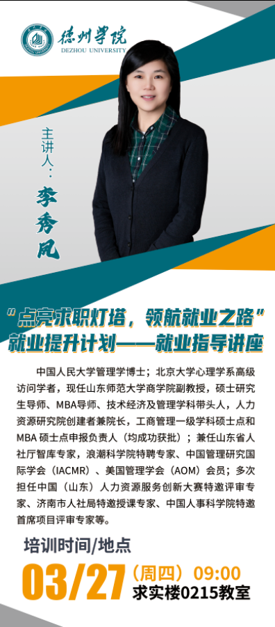 为进一步深化就业育人,助力毕业生精准把握就业机遇,全面提升职业竞争力,3月27日,化学化工学院于求实楼215教室举办“点亮求职灯塔,领航就业之路”就业提升计划—就业指导讲座。讲座邀请中国人民大学管理学博士、北京大学心理学系高级访问学者、山东师范大学商学院副教授李秀凤担任主讲嘉宾。