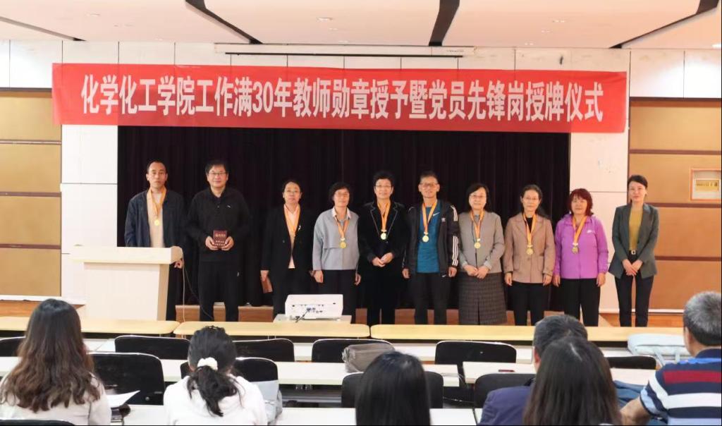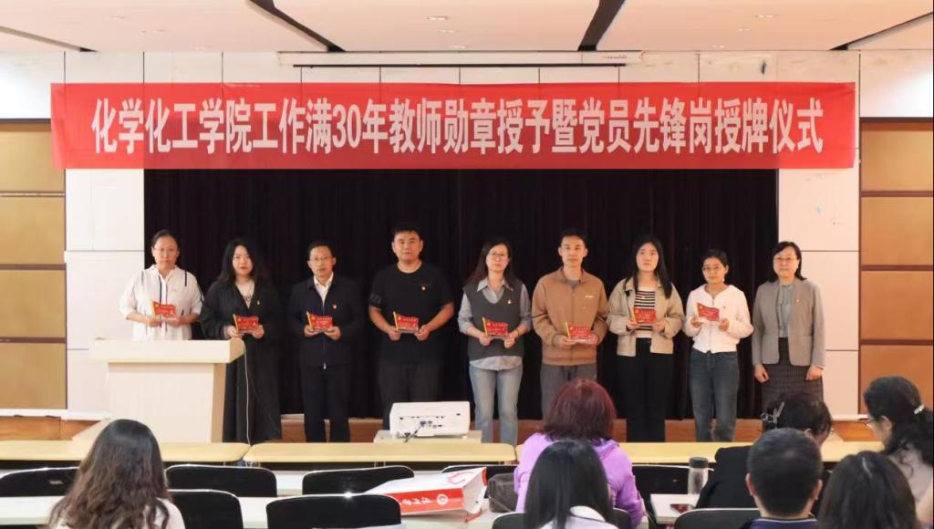 为进一步弘扬教育家精神,展现广大教师立德树人、自信自强的精神风貌,彰显党员教师在思想引领、创新发展等方面的先锋模范作用,10月15日,化学化工学院于求实楼215会议室举办工作满30年教师勋章授予暨党员先锋岗授牌仪式。学院党委书记主持会议。