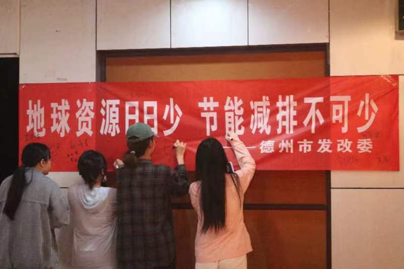 围绕“地球资源日日少,节能减排不可少”主题,德州市发展和改革委员会科长杨志致辞,介绍德州市环保产业发展状况及趋势,鼓励同学们培养创新精神,努力学好知识,争取投身环保行业,为环保事业发展贡献青春力量。德州环保产业协会秘书长田松林致辞,表示环境监测、环境影响评价等在企业生产中的重要地位,青年学生在环境保护中承担着重要使命。德州天洁环境影响评价有限公司、德州广源环保科技有限公司、山东金诚检验检测认证有限公司三家环保行业标兵企业分别介绍企业的运行情况及对环保人才的需求,鼓励同学们学知识,长本领,增见识,为国家的环保事业作出贡献。
