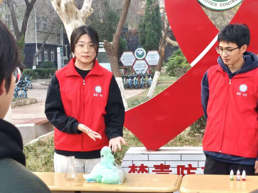 此次主题活动将化学实验和主题宣讲相结合,成功地将抽象的艾滋病预防知识转化为生动形象的视觉展示,为校园防艾宣传注入了新的活力,为校园防艾宣传注入了新的活力,进一步推动了大学生做到“知艾防艾”,从而助力实现“校园零艾滋”。