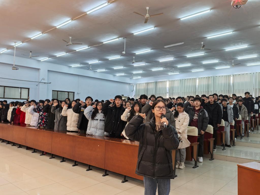 随后,全体同学进行了庄严宣誓。同学们宣誓将积极响应号召,做文明行为的先行者和优良学风的传播者。
