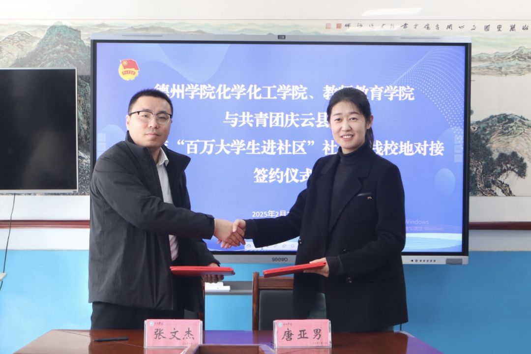为深入推动校地资源共享、优势互补,助力大学生实践成长与地方经济社会发展,2025年2月23日,化学化工学院与共青团庆云县委开展2025年“百万大学生进社区”社会实践校地对接座谈会。庆云县团委主要负责同志、化学化工学院党政领导班子成员、有关负责同志参加会议。