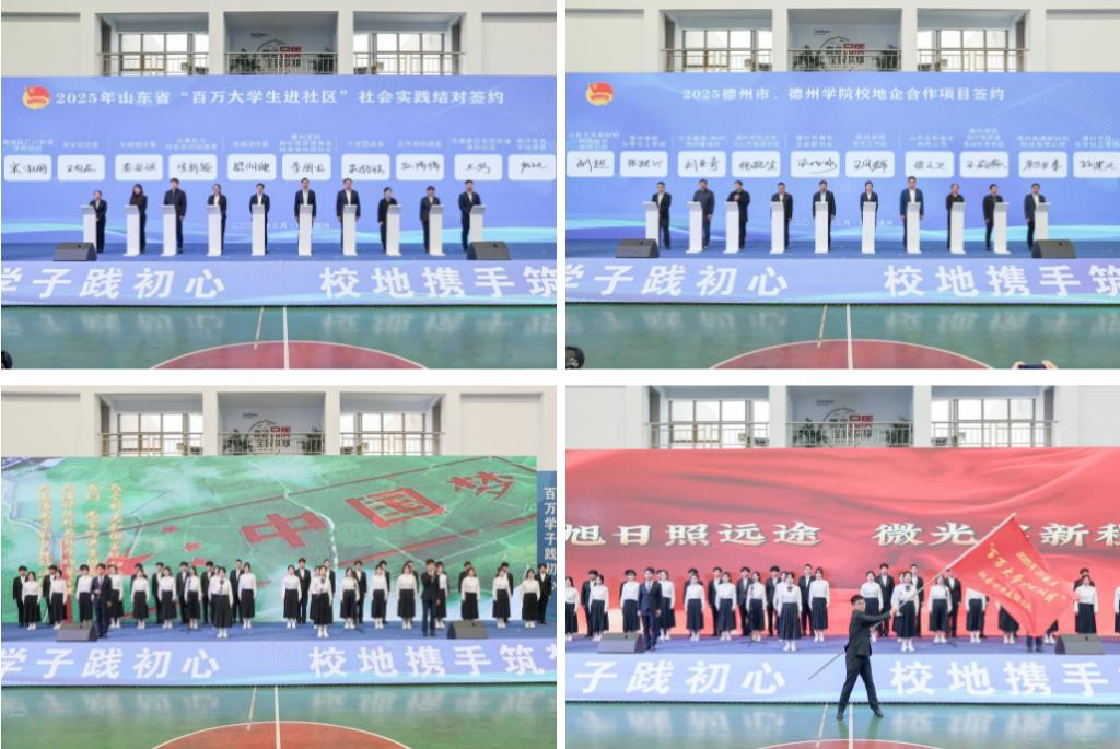 3月1日,2025年山东省“百万大学生进社区”社会实践暨校地共青团协作助力城校融合行动启动仪式在德州学院举行。本次启动仪式的核心目的在于整合校地资源,深化社会实践与人才培养协同机制。德州学院充分发挥智力密集优势,在科技成果转化、科创平台建设、产教融合赋能等多个领域与德州展开深度合作与协同创新,为德州的高质量发展注入了强大动能。化学化工学院第一教师党支部“全国高校‘双带头人’教师党支部书记‘强国行’专项行动团队”参与的2个校地企合作项目在现场成功签约。